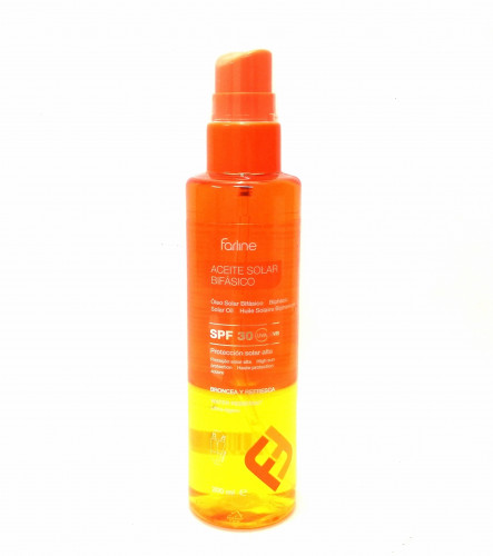 Aceite solar bifásico en spray con factor de protección solar 30. Activa, intensifica y prolonga el bronceado, mientras refresca gracias a su fase acuosa. Es ultra ligero, refrescante y sin marcas blancas. Ofrece protección frente a la radiación ultravioleta A y B. Es ideal para activar, realzar y prolongar el bronceado. Activos: Filtros solares, con Taninositol™